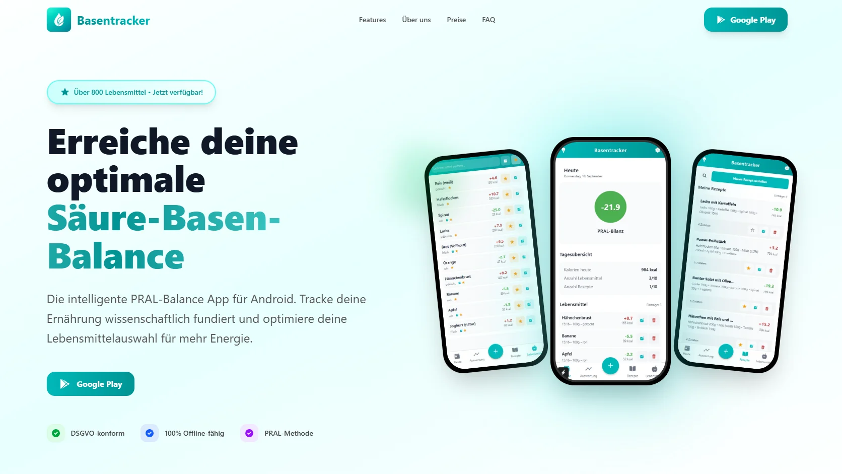 Das Besondere: Die Datenbank enthält über 800 Lebensmittel mit wissenschaftlichen PRAL-Werten für ein zuverlässiges Tracking.