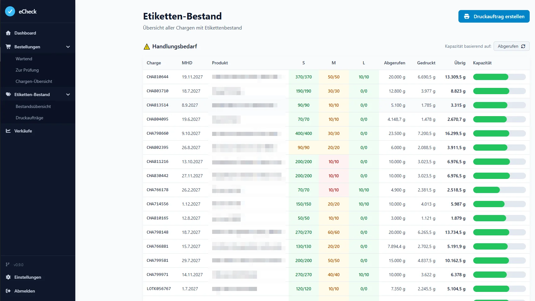 Im Lebensmittelhandel müssen Verpackungen mit Etiketten für Mindesthaltbarkeitsdatum und Charge versehen werden. Mein Tool gleicht den Lagerbestand mit dem Etikettenverbrauch ab, um unnötige Druckmengen zu vermeiden.